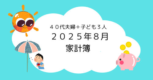 40代夫婦+子ども3人の2025年8月家計簿です。