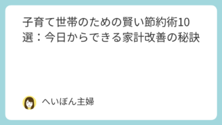 暮らし 子育て世帯のための賢い節約術10選:今日からできる家計改善の秘訣