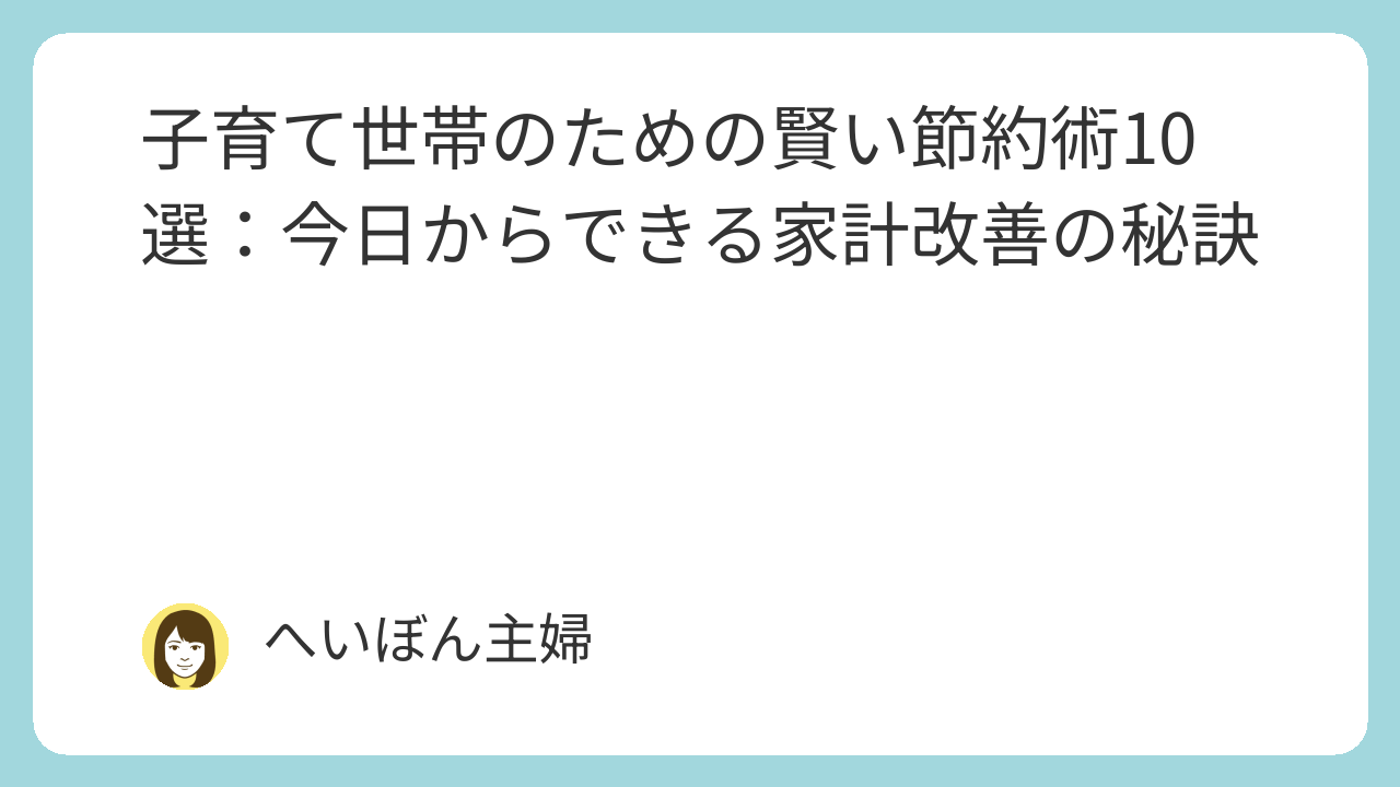 ファミリー層の節約は、固定費の見直しと日々の小さな習慣の積み重ね、そして時間の有効活用が鍵となります。この記事で紹介したアイデアを参考に、まずはできることから少しずつ始めてみてください。